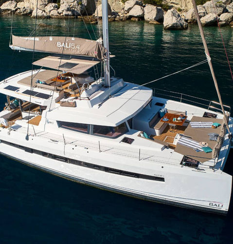 Catamaran Bali 5.4 em Lisboa – até 37 passageiros. Ideal para eventos, festas e passeios no Tejo. Catering, bar e tripulação profissional incluídos.
